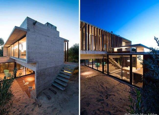 Dom usytuowany jest na bardzo trudnym terenie (wydmy stanowią typowe środowisko Buenos Aires) – dlatego też posiada tak osobliwą formę. Otóż dwie proste konstrukcje domu przechodzą jedna nad drugą pod kątem prostym. Dolna część – wydłużona – umieszczona jest bezpośrednio na podłożu, natomiast górna jest wsparta o dolną, a jej końcowy fragment “wisi”. W ten sposób zyskuje się miejsce na dole, mieszkańcy mają prywatny zakątek i cień ochronny popołudniami.