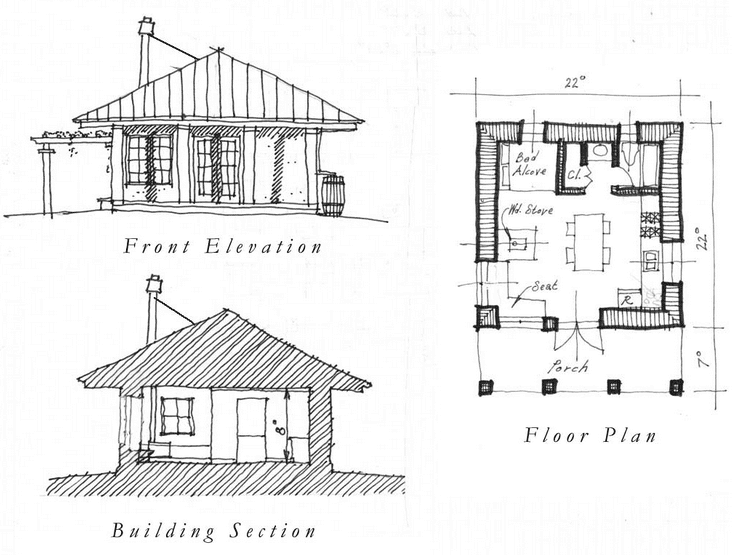 Bardzo ciekawy rysunek – elewacje, rzut i przekrój
