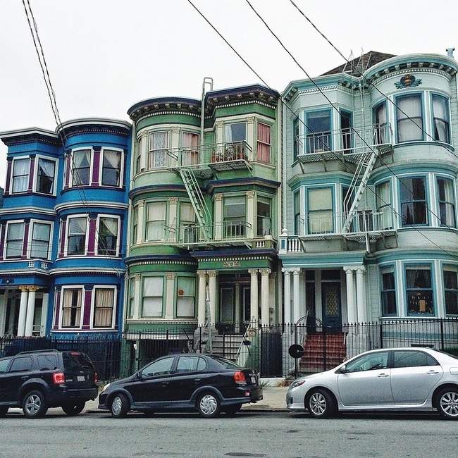 Kopiuj/Wklej -to jedna z tych cech, których na pewno użylibyśmy chcąc opisać budownictwo w stylu XIX i XX wieku San Francisco. Podobnie jak u nas kostki czasów PRL, tak w Ameryce w ciągu ulicy widzimy jeden sprawdzony budynek skopiowany wielokrotnie. Żeby jednak nie było za nudno (no i nie do końca identycznie:P), – tak! Otóż to!- Zmieniano budynkom kolor elewacji ;] można i w ten sposób ;]