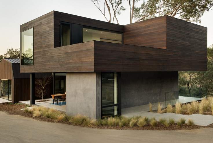 Zobacz, jak budynek wkomponowany jest w zbocze.Mniej znaczy więcej – zgadza się w tym wypadku??Forma domu – czy ktoś powiedział, że dom musi być prostokątem?Tak wygląda zaprojektowany kompleksowo obiekt – zobacz, jak doprojektowane jest ogrodzenie – powtarza materiał i rodzaj balustrad balkonów i zadaszenia wjazdu – to zalety projektu indywidualnego.Czy strefa wejściowa domu musi być nudna?Okładzina z kamienia naturalnego. Nie ma nic bardziej szlachetnego niż kamień naturalny – zobacz, jak okładzina elewacji z kamienia naturalnego świetnie wygląda na tym budynku!Duże przeszklenia w domu? Polacy nie są zbyt wielkimi społecznymi ekshibicjonistami jeśli chodzi o zacisze domu – czasem jednak odrobina otwarcia na otaczający świat mogłaby … ;]Betonowa elewacja jest poręczna – nie trzeba jej odmalowywać!Panel elewacyjny nie musi być zamontowany w sposób klasyczny – zanim go zamontujesz, pooglądaj różne rozwiazania (poza katalogiem który podają Ci producenci okładzin!)Panele z kolorowej okładziny na elewacji budynku?