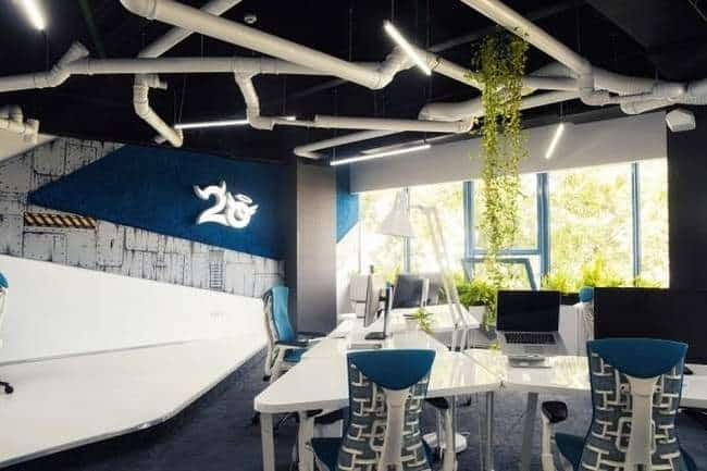 Wnętrze biura 2o przypomina wnętrze statu kosmicznego – projektanci zadbali o takie detale jak odpowiednie drzwi czy widoczne instalacje, które nadają surowego, industrialnego wydźwięku. Nie bez powodu to wnętrze biurowe mamy kojarzyć właśnie ze statkiem kosmicznym – zarówno projektantom jak i Inwestorom, czyli twórcom gier 2o, zależało na odtworzeniu wnętrza w klimacie takich filmów jak Star Trek czy Star Wars (patrząc na ten ostatni, ze względu na niedawne wznowienie serii Gwiezdnych Wojen, post idealnie wpasowuje się w reaktywowany trend i zainteresowanie tematyką Star Wars ;] .