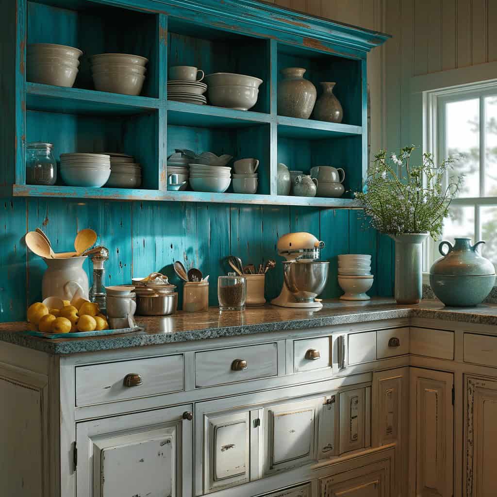 Odrobina “przełam nudę w kuchni” – czyli kup kolorową farbę – najbardziej szaloną jaką znajdziesz, wyjmij półeczki, zmatuj powierzchnię papierem ściernym i … MALUJ!!!