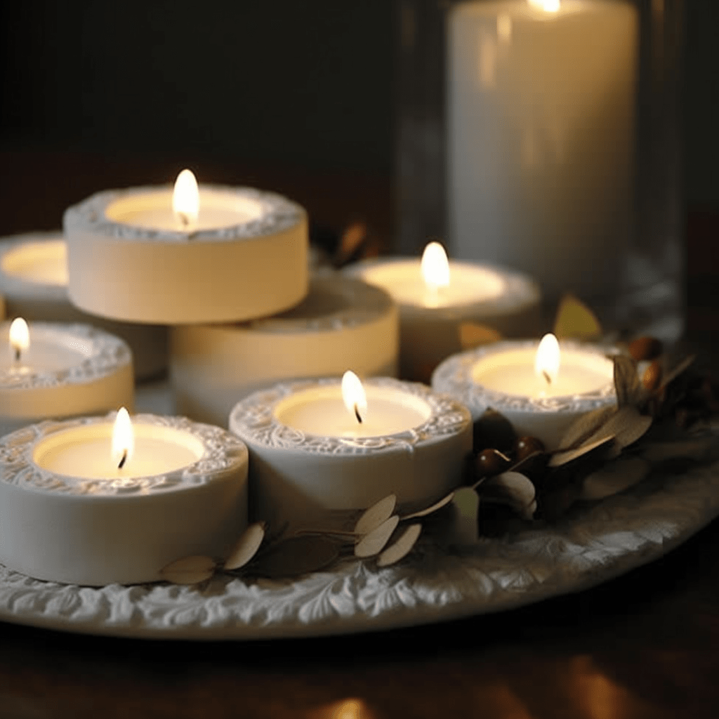 Relaksujące świece zapachowe na tealight, idealne do stworzenia ciepłej atmosfery w domu, ozdobna taca i aromatyczne światło poprawiają nastrój i dodają elegancji wnętrzom.
