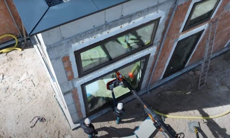 Cześć! Duży nowoczesny dom to duże i nowoczesne okna! Jesteśmy na budowie parterowej willi wg naszego projektu i akurat tu i teraz ekipa – Montuje okna.