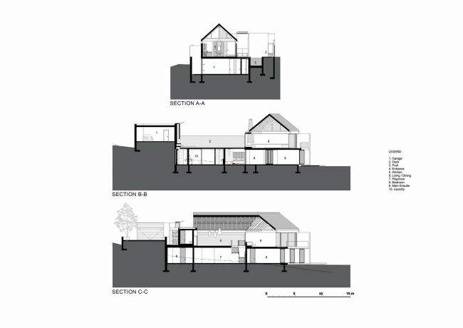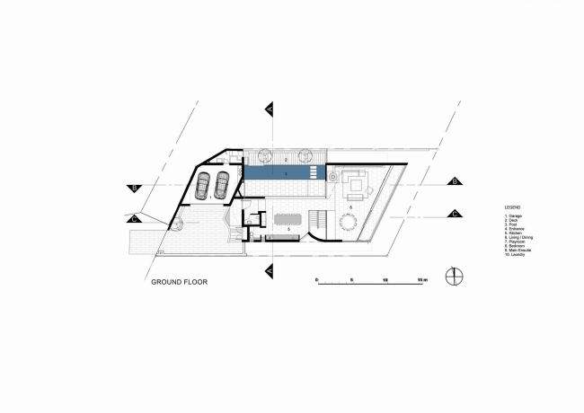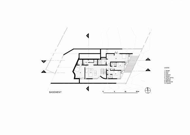 Budynek stanowi swoistą ochronę przed wiatrem. Wewnętrzne patio z basenem jest osłonięte z każdej strony, zarówno skrzydłami willi jak i bujną roślinnością. Natomiast na dole znajdują się cztery pokoje. W każdym z nich znajduje się łóżko typu queen size oraz łazienka, pomieszczenia te mają bezpośrednie połączenie z plażą.