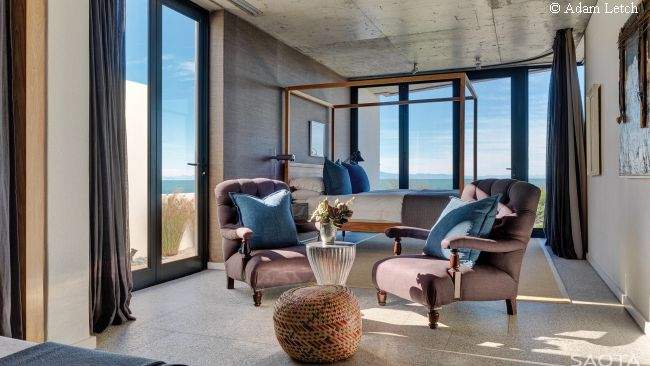 Przeszklenia, które zdecydowanie są clou projektu sprawiają, że wnętrza są jasno oświetlone, a ponadto dają wgląd na przepiękną panoramę oceanu. Nie zapominajmy też o zatoce Stompneus Baai i wyspie Świętej Heleny! Całe otoczenie nadaje rezydencji jedyny w swoim rodzaju klimat. Projekt przewidywał również silne działanie wiatrów południowo-wschodnich – m.in. dlatego zdecydowano się umieścić basen po północnej stronie.
