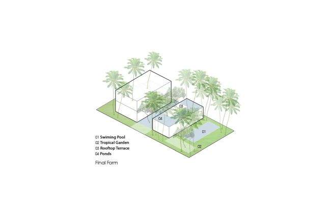 Roślinność odgrywa tu kluczową rolę – przybliża kontakt mieszkańców z naturą i nadaje egzotycznego charakteru całości projektu.