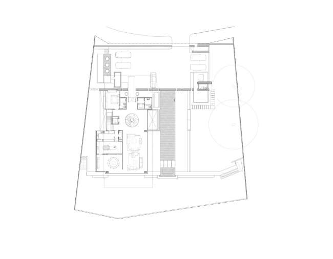 Takie domy-bryły jakoś nie robiły na mnie wrażenia, ale ten jest wspaniały! A wnętrze po prostu fantastyczne! Niby wykorzystano tylko kilka rodzajów materiału ale wszystko zachwyca. Bardzo podoba mi się stół zrobiony z całego pnia drzewa