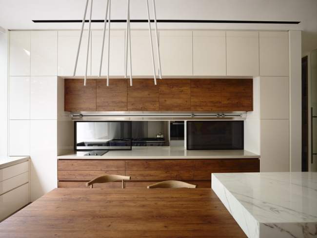Kuchnia w bardzo nowoczesnym, ale przyjemnym stylu.