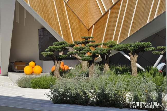NiemcyDo niemieckiego pawilonu kolejka w 40 stopniowym upale wynosiła 60min czasu oczekiwania na wejście. Postanowiłam zwiedzić więc dach ;] Niemcy mieli jedno z lepszych zagospodarowań wokół pawilonu. Na terenie swojego kwartału zmieściła się scena, plac, amfiteatr, sam pawilon i duże reprezentacyjne wejście z długimi zapraszającymi schodami. Widać, że nie jest Niemcom daleki temat planowania przestrzennego w kontekście architektury. Każdy detal w założeniu był kompletnie przemyślany – nawet ławki na dachu pawilonu.