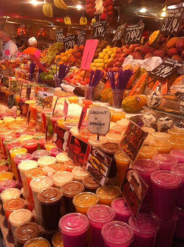 Klejny wspaniały targ z Barcy to La Boqueria przy La Rambla. Dlaczego Targ jest fajny? Jedna kawa ze Starbucksa którą kupiłam na Rambli kosztowała 5E. Za te 5E na Targu La Boqueria kupiłam potem 5 soków ze świeżych owoców egzotycznych (np. papaja-mango-kokos). To jest targ! Jest tanio i pysznie!! Należy się mu dobra architektura!!