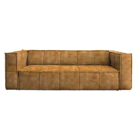 Klasyczna musztardowa kanapa idealnie zharmonizuje się z krzykliwymi, egzotycznymi dodatkami.