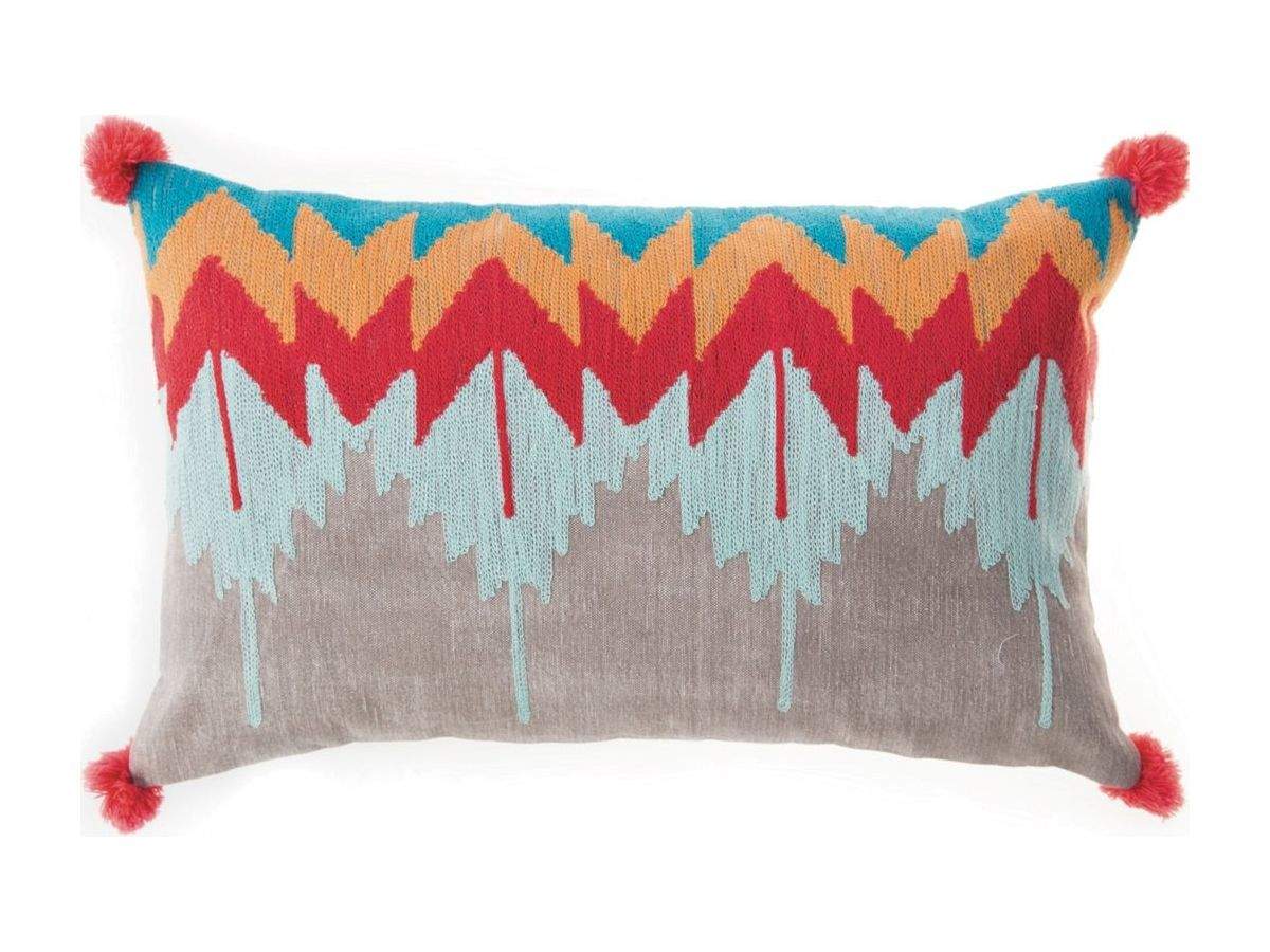 Kolorowe wzorzyste poszewki i ręcznie szyta poduszka w etno wzory idealnie pasują do stylu etno dzięki swoim unikalnym barwom.