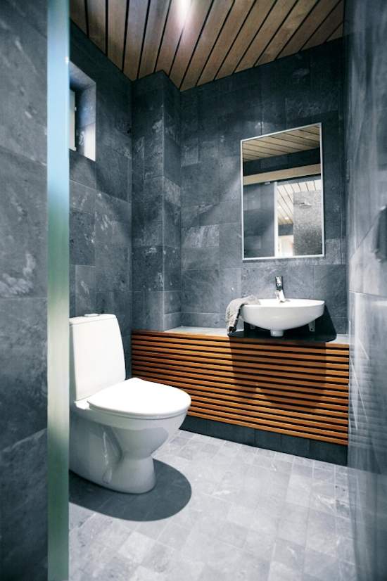 Jasnoszary kolor posadzki i kamienia jest bardzo praktyczny zwłaszcza w łazience.