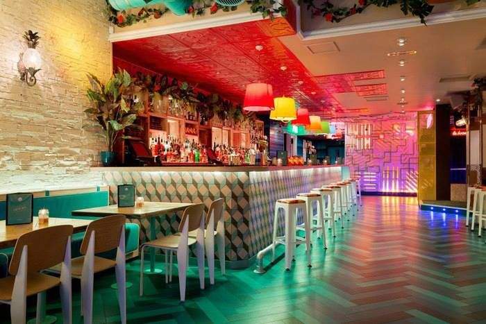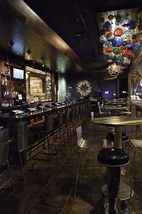 Otwartej przestrzeni i krzesła wokół baru – każdy rodzaj klienteli znajdzie tutaj coś dla siebie, a wielokolorowe lampy wiszące nad barem dodadzą miejscu trochę uroku i ożywią piwnicowe wnętrze.
