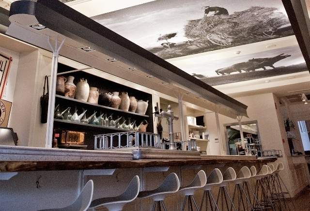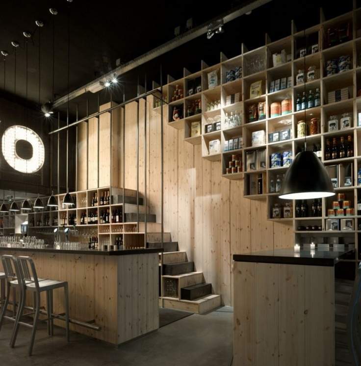 Zwyczajny pub dla fanów każdego rodzaju wina. Dzięki metalowej konstrukcji na butelki z winem, klienci mogą sami zapoznać się z ofertą i wybrać odpowiedni gatunek, jeżeli oczywiście są znawcami. Dla laików szafa na wino będzie ładną i kolorową dekoracją. Drewno i jasne światło sprawiaj miłe wrażenie czyniąc lokal bardziej przytulnym.
