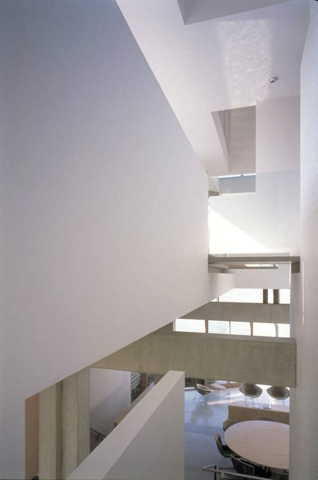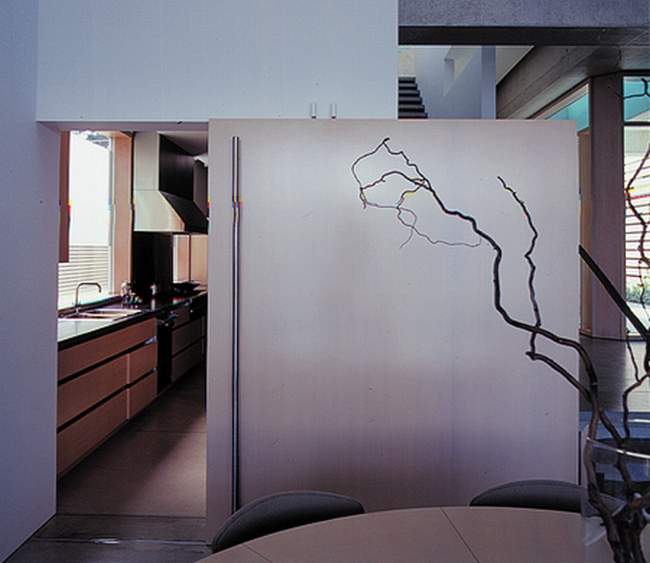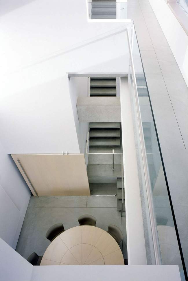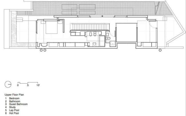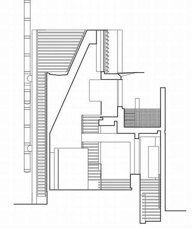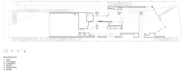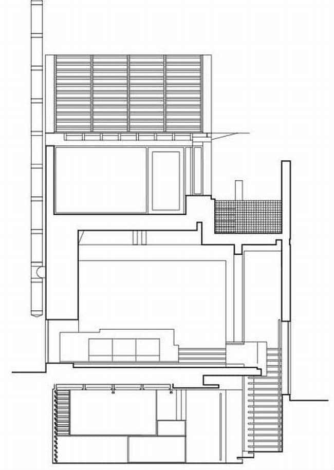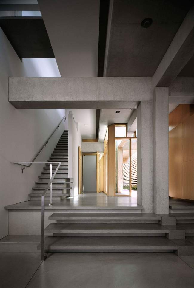 Projekt tego nowoczesnego domu został zdeterminowany przez działkę, na której się znajduje – długa na 47 metrów, jednak szeroka jedynie na 10 metrów! Ze względu na to całkowita szerokość domu to 8m. Jak widać nie stanowiło to przeszkody do zaprojektowania tej niezwykłej luksusowej rezydencji.