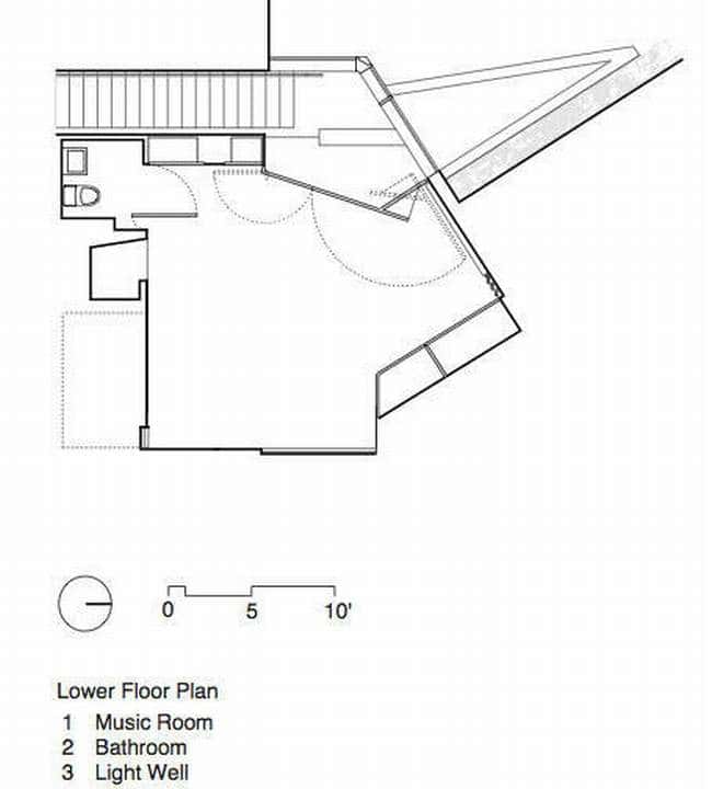 Projekt Za projekt odpowiedzialne jest biuro architektoniczne Patkau Architects. Z założenia jest to przestrzeń zaprojektowana dla jednej osoby, a dom ma powierzchnię 285 m2! Mieści w sobie przestrzenie do wypoczynku, studio oraz pokój muzyczny.