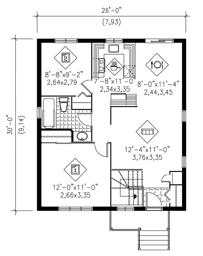 Rzut parteru niewielkiego domu – zobacz, jak zaoszczędzić przestrzeń na dobrym usytuowaniu klatki schodowej!