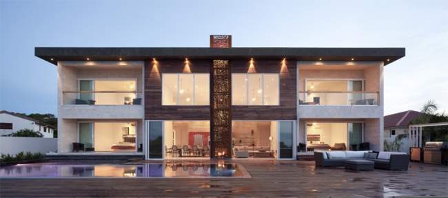 Pomysł bardzo fajny z tymi kominkami w i na zewnątrz domu jednocześnie, tylko te zewnętrzne można by trochę dopracować na przykład dodać grill albo wędzarnię żeby był bardziej funkcjonalny.