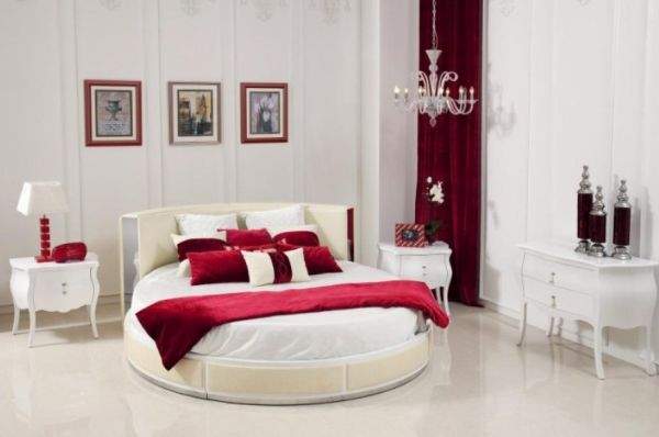 Aranżując wnętrze sypialni w którym chcesz postawić okrągłe łóżko musisz pamiętać, że będzie ono zdecydowaną dominantą, że nie da się go złożyć i że dobranie do niego dodatków meblowych będzie większym wyzwaniem.