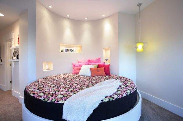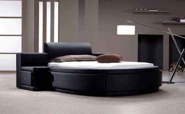 Niektóe okrągłe łóżka mają wbudowane nakastliki – to praktyczne.