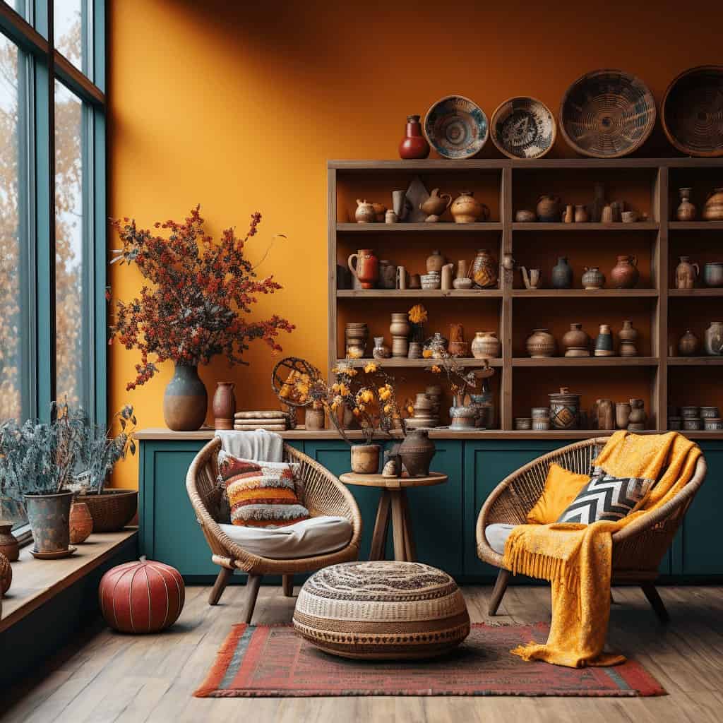 JesieńWnętrze w kolorach jesieni. Jesienne wnętrza to te bardzo przytulne, ciepłe, ale i melancholijne – takie jak jesień. Dominują tutaj kolory w odcieniach brązu, pomarańczy, czerwieni, ale również i te chłodniejsze barwy typu szary, niebieski, grafitowy. Jednak pamiętajcie, że szczególnie nasza polska Złota Jesień wcale nie jest ponura – wprowadź zatem do wnętrza kolorowe, intensywne dodatki!