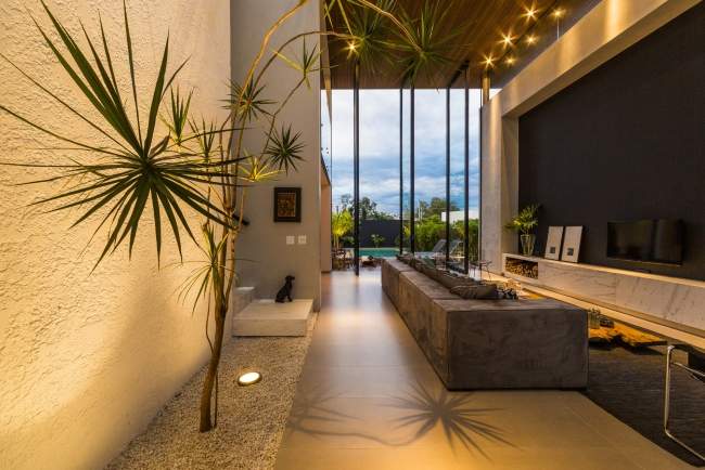 Willa marzeń Ta luksusowa nowoczesna rezydencja to projekt biura architektonicznego Spagnuolo Architecture, również z Brazylii. Dom ma powierzchnię 280 m2 (więc to całkiem niewiele), a głównym założeniem projektowym, na którym zależało zarówno Inwestorom jak i Projektantom było połączenie wnętrza domu z jego zewnętrzem poprzez zaprojektowane patio, zewnętrzny taras. Jak udało im się spełnić to założenie? Jak wygląda ten nowoczesny dom?