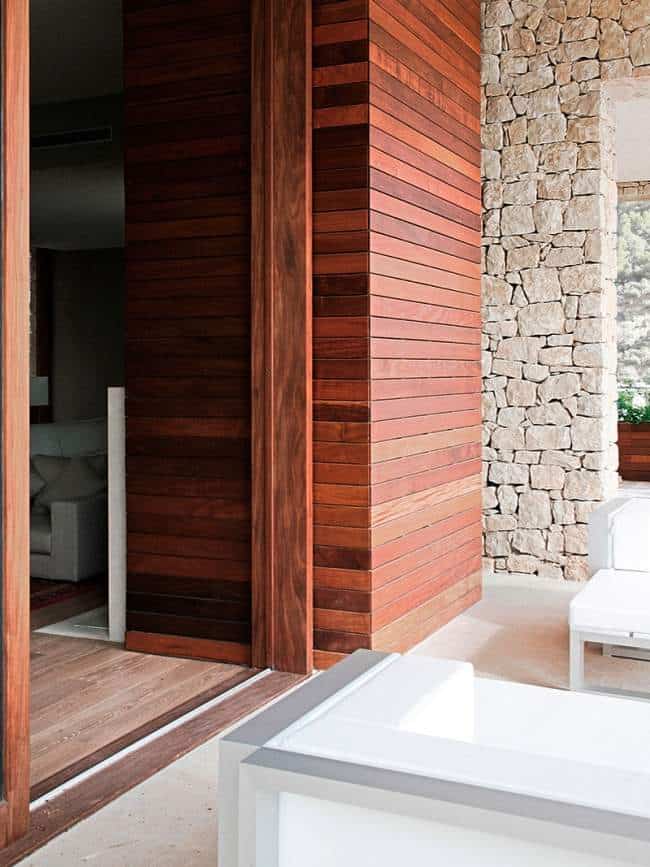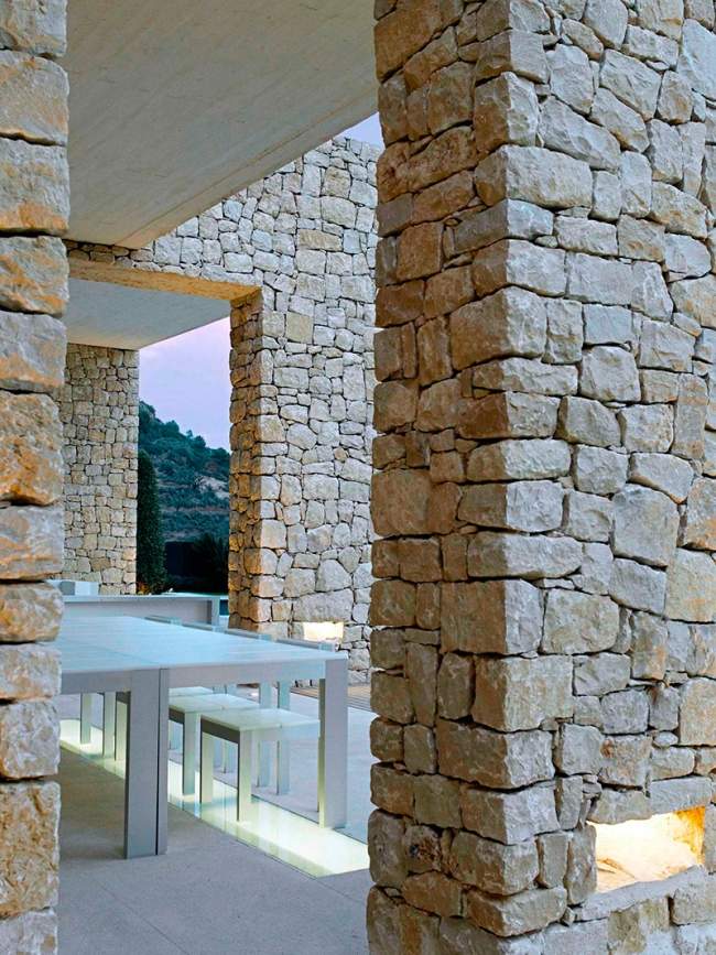 Światło Zawsze powtarzam Wam, że odpowiednio zaprojektowany budynek taki budynek, który efektownie wygląda zarówno za dnia, jak i nocą. W tym drugim wypadku niezbędna jest odpowiednia iluminacja obiektu i podkreślenie jego walorów za pomocą sztucznego oświetlenia. W domu w Monasterios oświetlenie budynku jest po prostu mistrzowskie – nie dość, że dom odbija siebie i światło w wodzie, to ponadto światło świetnie uwypukla fakturę poszczególnych materiałów zastosowanych w budynku: drewna, szkła i niesamowitego kamienia.