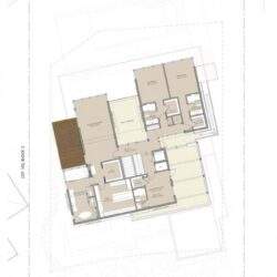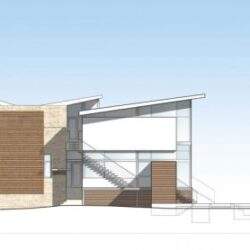 Od strony zatokidom otwiera się na kontekst, w którym się znajduje. Tutaj ukazuje się prawdziwa natura tej nowoczesnej rezydencji oraz charakter i upodobania klienta. Gwałtownie wzrastający dach, zastosowane materiały budowlane oraz szklane ściany robią piorunujące wrażenie. Wymaganie w warunkach zabudowy odnośnie nachylonego, wykonanego z dachówki dachu zostało tutaj przeinterpretowane i w końcowym efekcie dach został wykonany z serii nachylonych paneli, których wyższa powierzchnia okładziny została zrobiona z zastosowaniem elementów fotowoltaicznych. Cały dach subtelnie unosi się nad szklaną ścianą.