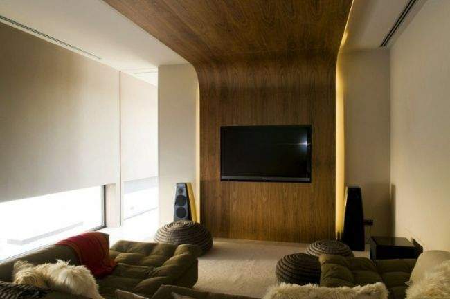 Nowoczesny design drewna przechodzącego ze ściany na sufit.