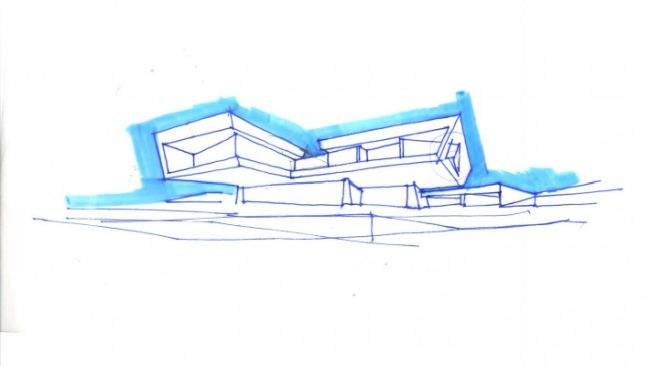 Prosty szkic formy budynku – tak pracuja architekci i tak powstają ich pierwsze pomysły.