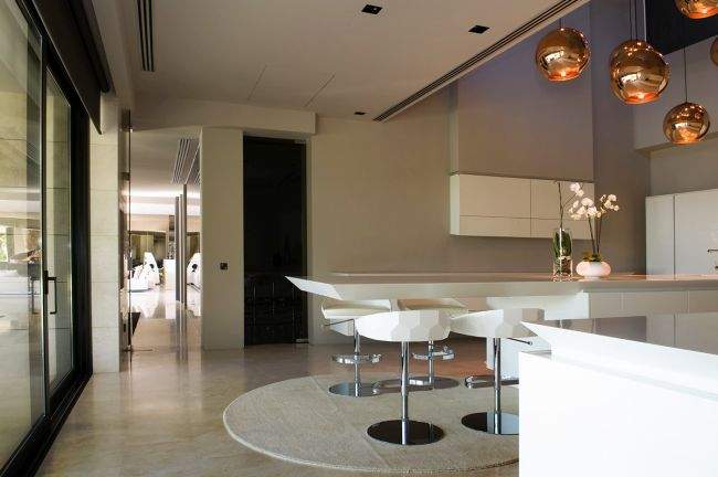 Żeby było wygodniej i jeszcze przejrzyściej, po kolei przejdziemy sobie przez ważniejsze pomieszczenia tego ekskluzywnego domu – to będzie taki wirtualny spacer po luksusowej willi w Hiszpanii ;] odwiedzimy kolejno salon, kuchnię wraz z jadalnią, sypialnie, łazienki i dodatkowo strefę relaksu znajdującą się przy wewnętrznym basenie! Zapraszam do intensywnej inspiracji!