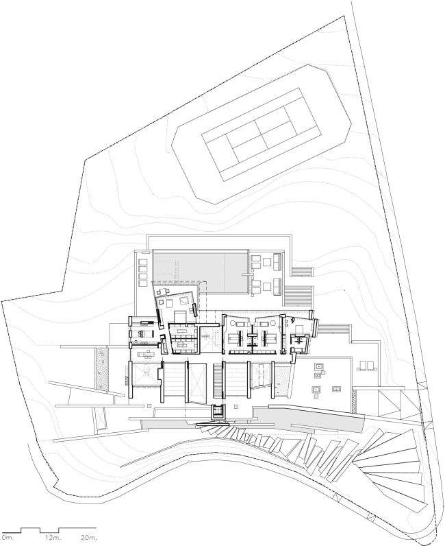 Rzuty budynku – czyli co, gdzie i dlaczego akurat tam ;] na rzutach widać powiązania pomiędzy poszczególnymi pomieszczeniami. Tutaj – rzut najniższej kondygnacji gdzie mieści się SPA.