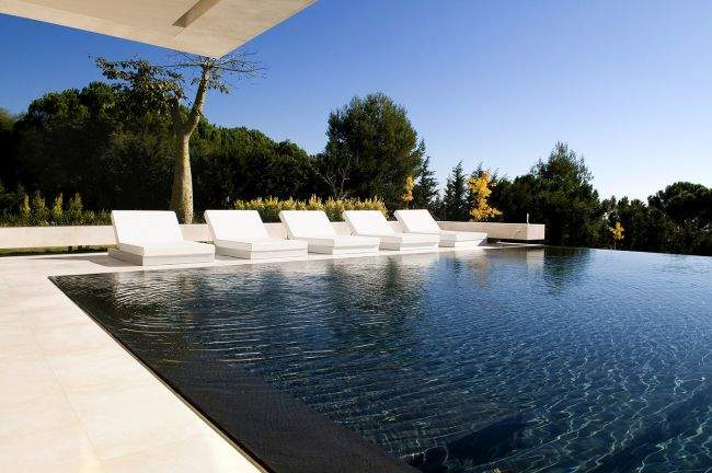 Basen usytuowany z południowej strony domu, z niesamowitym widokiem na Morze Śródziemne, o nowoczesnej formie, tworzący efektowne odbicia luksusowego domu w Marbella. Basen przy tym nowoczesnym domu to całe założenie wypoczynkowe – z miejscem do spożywania posiłków, leżakami do opalania i wygodną kanapą na długie rozmowy z przyjaciółmi. Wszystko to w nowoczesnym, prostym i bardzo stylowym designie. Jak w każdym projekcie nowoczesnego domu, zewnętrzne miejsce do wypoczynku stanowi przedłużenie wnętrza domu i salonu. Podobnie zaprojektowany został układ funkcjonalny luksusowej willi w Marbella.