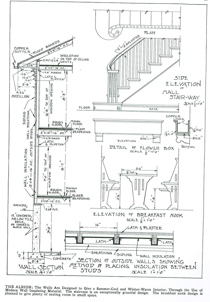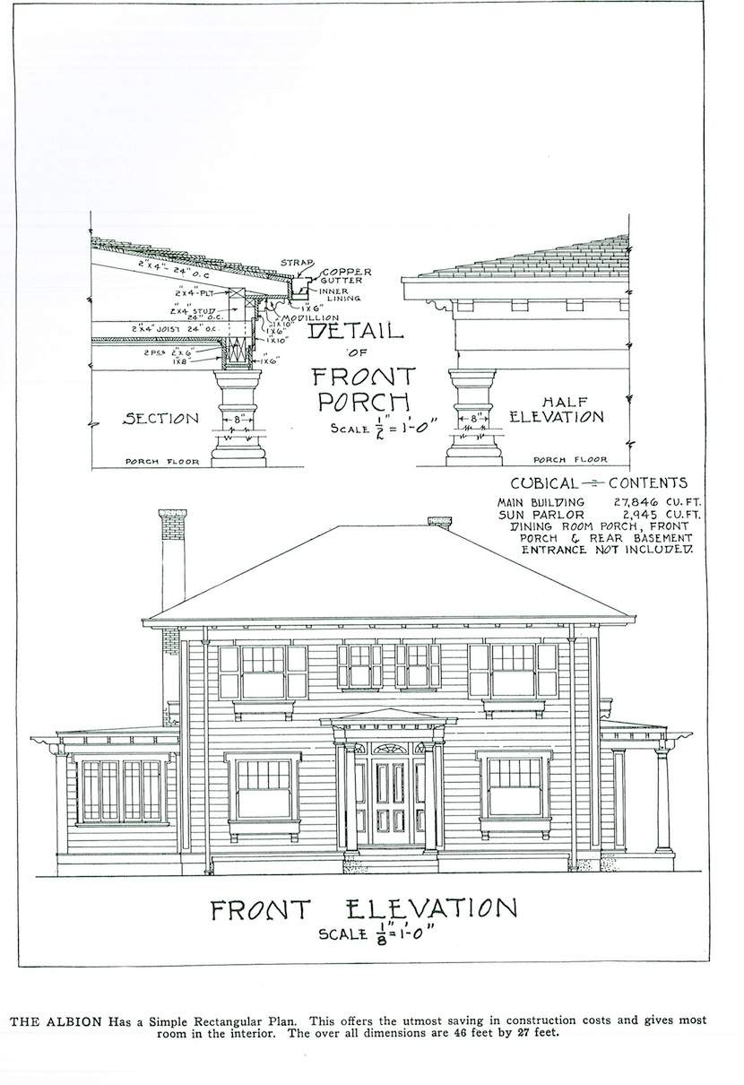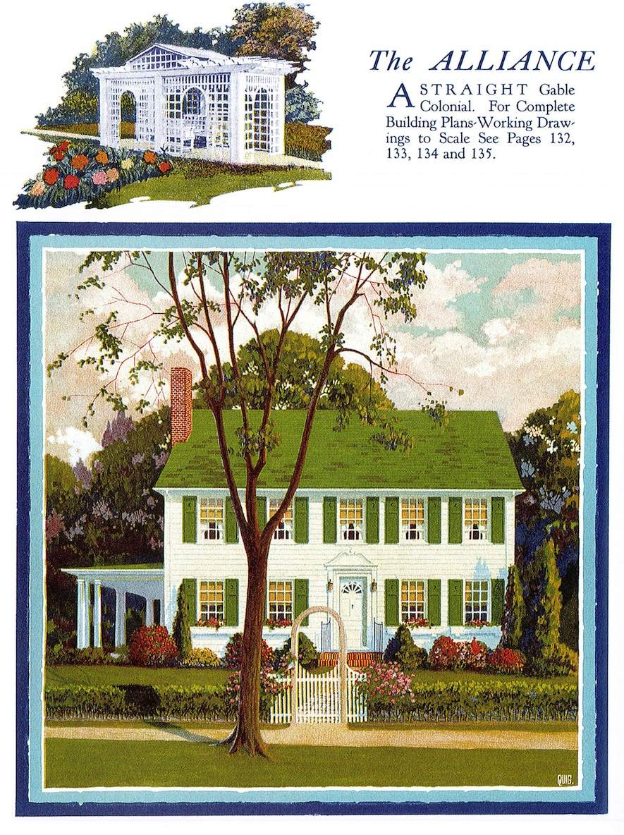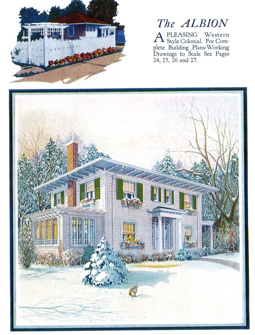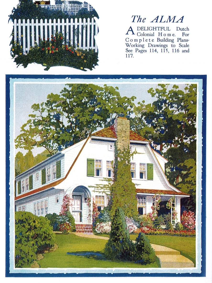 Ilustrowane książki z planami domów były bardzo popularne w Ameryce już w XVIII w., jednak największą popularność przeżywały od połowy XIX w. Przedstawiano w nich projekty domów dla klasy średniej i nawet klasy wyższej indywidualnych architektów lub firm, które dostarczały również tanie materiały budowlane, które można było zamówić wraz z planami. Projekty pochodzą z książki Williama A. Radforda „The most popular homes of the Twenties”, która jest współczesnym przedrukiem z książki wydanej w 1925.