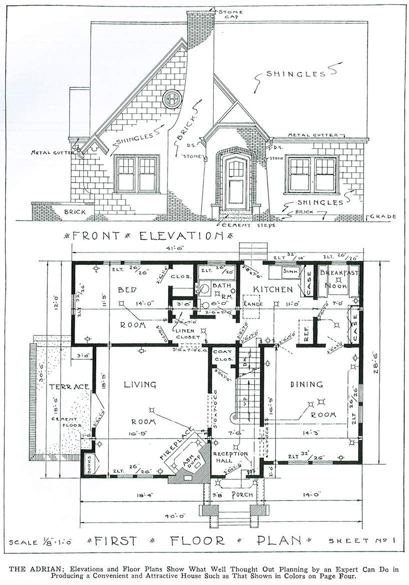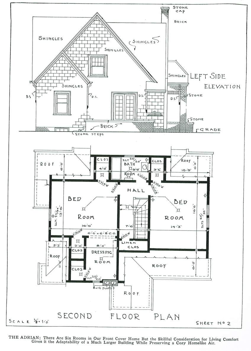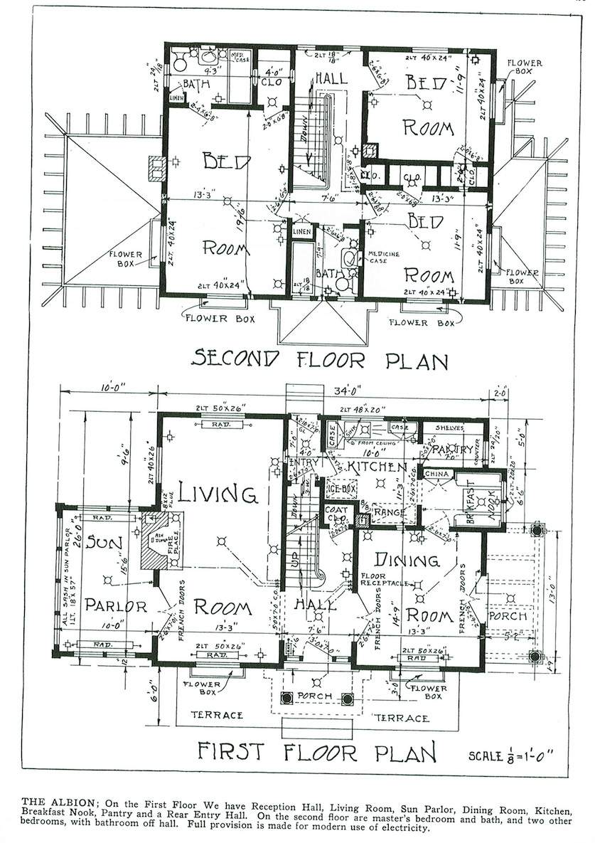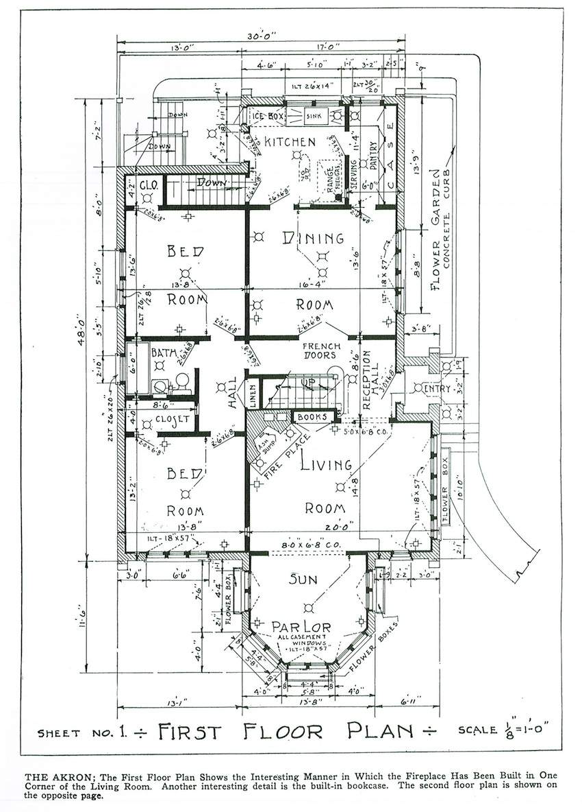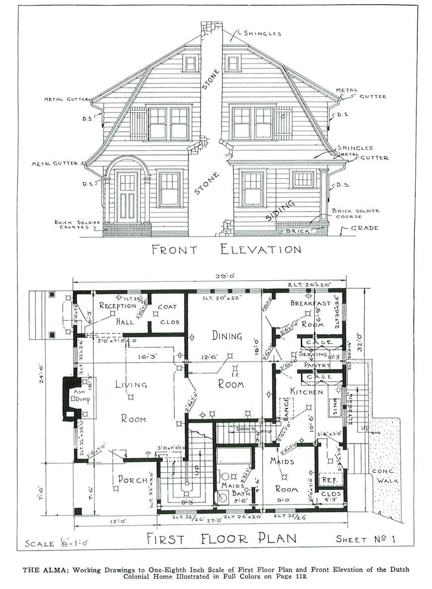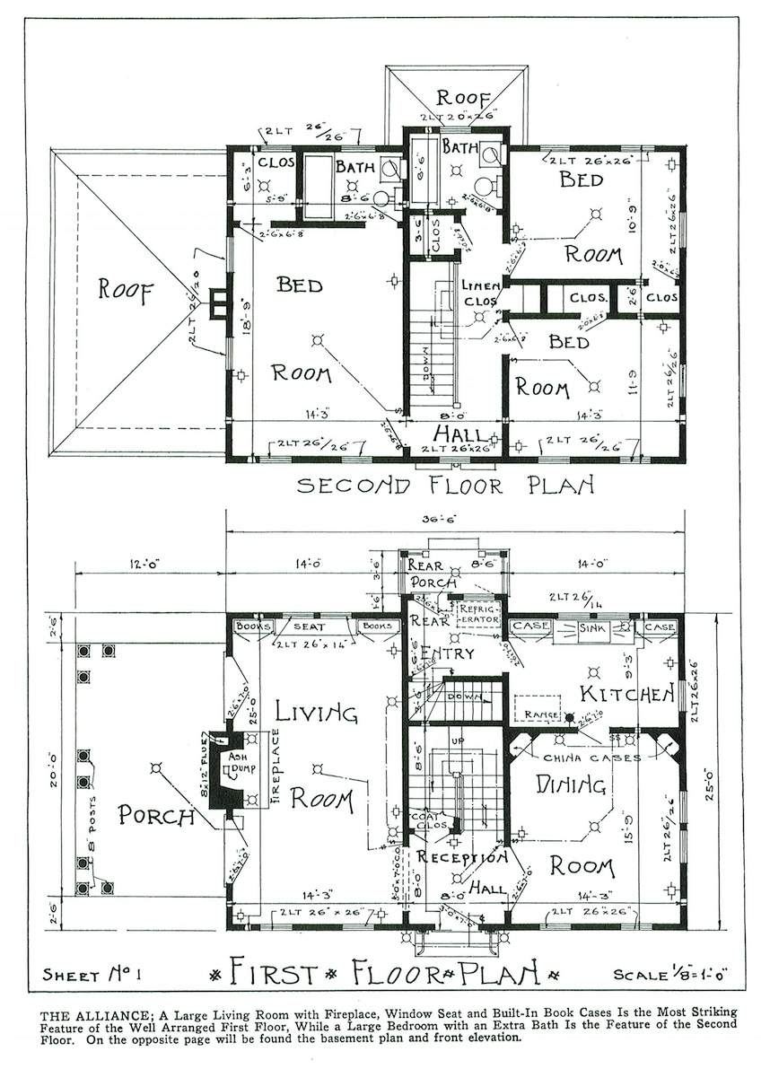 Ilustrowane książki z planami domów były bardzo popularne w Ameryce już w XVIII w., jednak największą popularność przeżywały od połowy XIX w. Przedstawiano w nich projekty domów dla klasy średniej i nawet klasy wyższej indywidualnych architektów lub firm, które dostarczały również tanie materiały budowlane, które można było zamówić wraz z planami. Projekty pochodzą z książki Williama A. Radforda „The most popular homes of the Twenties”, która jest współczesnym przedrukiem z książki wydanej w 1925.