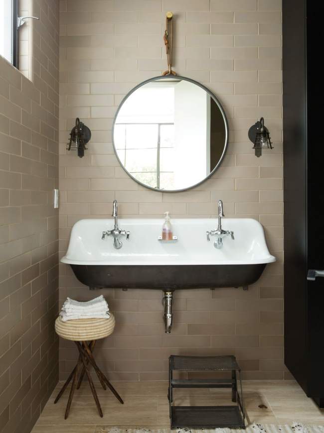 Ten nowoczesny dom to dom pełen sprzeczności – zobacz jak wygląda design łazienki – prosty, wręcz surowy – stanowi kontrast dla pozostałych eleganckich, luksusowych i przyjemnych wnętrz w tym domu.