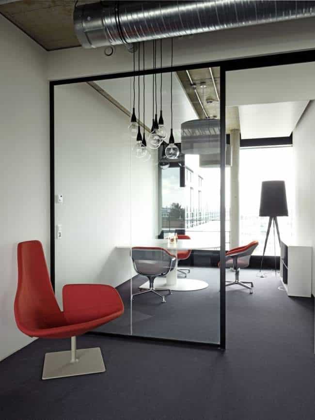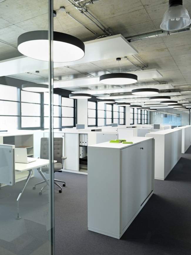 Biuro Siedziba Sony w Monachium to industrialne wnętrze biurowe, w którym przewidziano nowoczesne meble i designerskie rozwiązania oświetlenia. Ze względu na charakter pracy branży muzycznej w przestrzeni tej zaprojektowano oprócz typowych stanowisk biurowych, miejsca dostosowano również pod względem akustyki i technologii muzycznej – przecież każdy projekt nietypowej przestrzeni biurowej to projekt indywidualny, dostosowany nie tylko do potrzeb jego użytkowników, ale również branży i charakteru pracy ;]