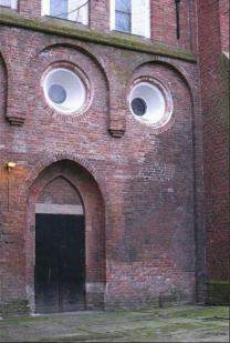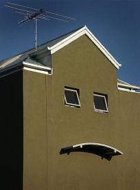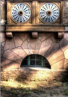 Uosobione Przerażenie. Niezwykła ozdoba w postaci dwóch owalnych mozaik (czyżby to był fragment balkonu?) oraz małego okienka w piwnicy utworzyły wyraz zaskoczenia, a nawet grozy malujący się na „twarzy” sfotografowanego budynku.