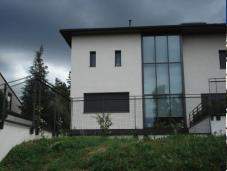 Smutek. Ten dom jest smutny, co podkreślają nie tylko półotwarte, proste okna i daszek nad wejściem, ale i kolor budynku, na jaki został on pomalowany.