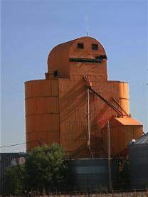 Robot. Ceglasty kolor, proste kształty i okna imitujące oczy i usta – na zdjęciu został przedstawiony budynek-robot.