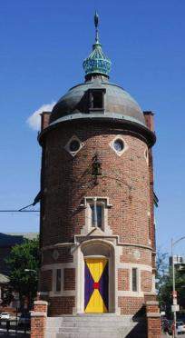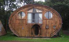 Ukrywana Ciekawość. Ten okrągły budynek ledwo skrywa swoją ciekawość, a wszystko za sprawą trójkątnych okien oraz interesujących drzwi pomalowanych na żółto, czerwono i fioletowo.
