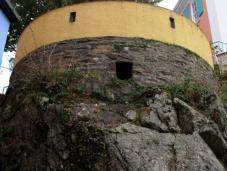 Leśny Ludek. Ten budynek został zbudowany na skale, a jego pierwszy poziom tworzy mur. Trzy wąskie okna nadają mu ludzkie oblicze.