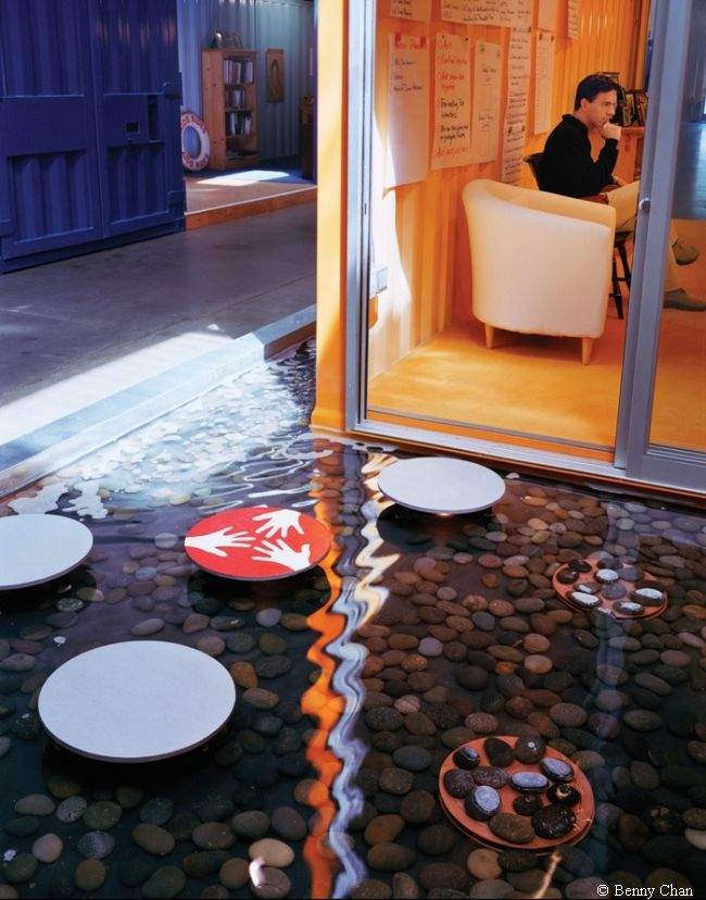 Pallotta TeamWorks zajmuje się zbieraniem funduszy na szczytne cele. W 2002 roku firma zapragnęła także zrewolucjonizować designerski światek – razem z ekipą Clive Wilkinson Architects postanowiono stworzyć innowacyjny projekt wnętrza biurowego składającego się z… kontenerów transportowych! Brzmi naprawdę ciekawie, prawda?