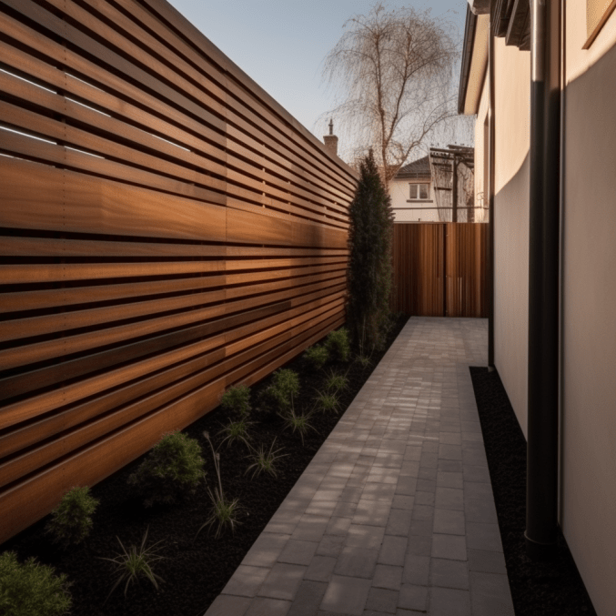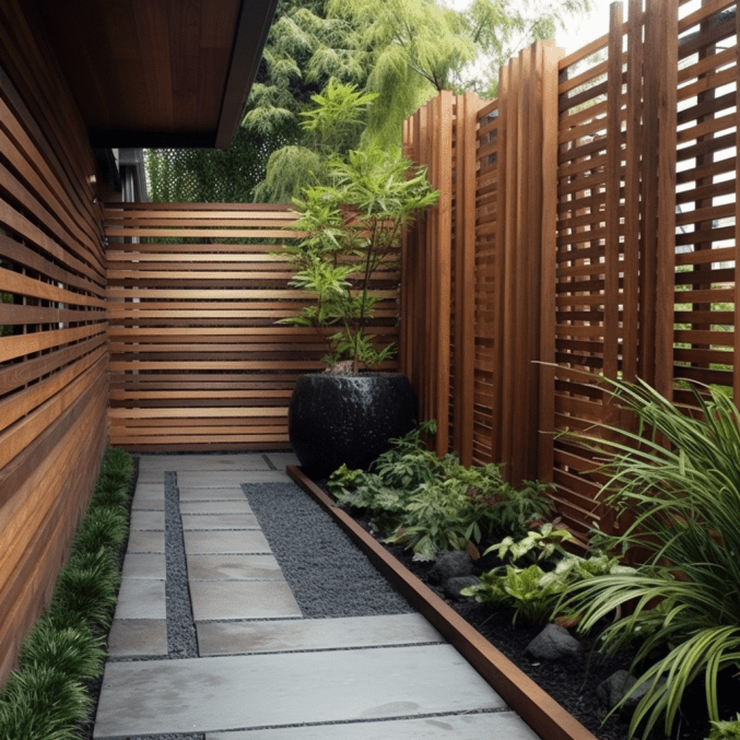 Minimalistyczne, przyjemne dla oka podwórko. Zadbany przemyślany ogródek i stylowe drewniane ogrodzenie – zainspiruj się!