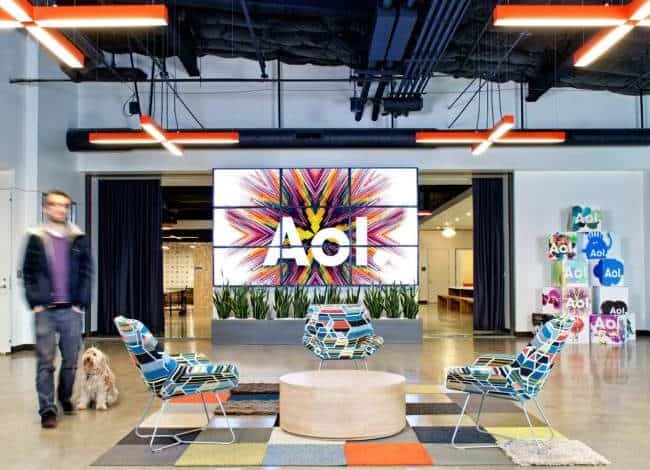 Aol to firma posiadająca takie blogi jak Huffington Post czy Crunch Tech – nic dziwnego, że zarząd firmy dołożył wszelkich starań, aby główna siedziba firmy odwzorowywała swoim designem poziom, który zajmuje w wirtualnym świecie. ;] Design wnętrza miał nawiązywać do korpo rozwiązań rodem z lat 80′ – dużo przestrzeni, biuro typu open space, surowe materiały a w tym wszystkim nowoczesne akcenty.