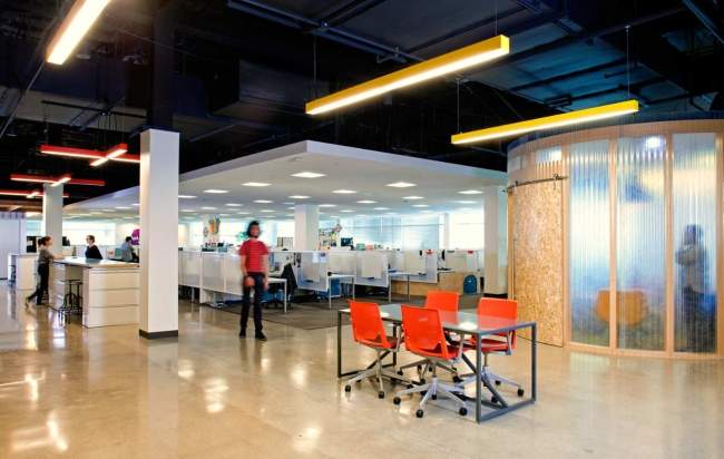 Aol to firma posiadająca takie blogi jak Huffington Post czy Crunch Tech – nic dziwnego, że zarząd firmy dołożył wszelkich starań, aby główna siedziba firmy odwzorowywała swoim designem poziom, który zajmuje w wirtualnym świecie. ;] Design wnętrza miał nawiązywać do korpo rozwiązań rodem z lat 80′ – dużo przestrzeni, biuro typu open space, surowe materiały a w tym wszystkim nowoczesne akcenty.
