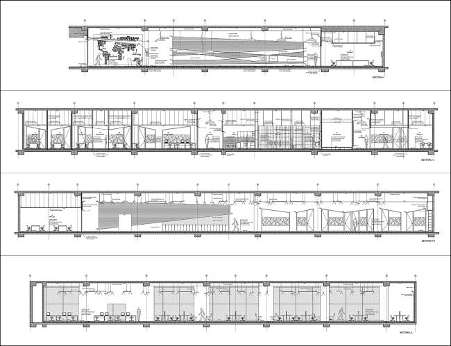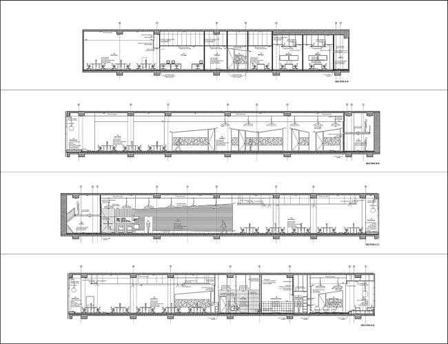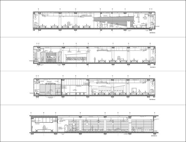 Projekt Mam dla Was jeszcze kilka rysunków technicznych tego nowoczesnego biura. Ze względu na to, że przestrzeń biurowa siedziby eBay w Turcji mieści się na jednej kondygnacji – rzut jest jeden. Za to ciekawie zostały tutaj zaprezentowane poszczególne elementy projektu na rysunkach… przekrojów! Zobacz i zainspiruj się!