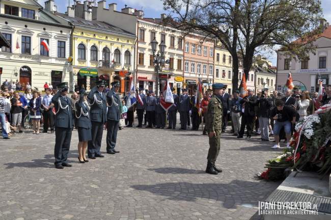 T.K.Na rzeszowskim Rynku, pod pomnikiem Tadeusza Kościuszki odbyła się oficjalna część obchodów święta 3go Maja. Usłyszeć można było przemówienia, wypowiedzi, odczyty władz miejskich. Odbył się krótki pokaz służb mundurowych zakończony uroczystą salwą, a miejscowi Włodarze, Cechy, Izby, Służby porządku, złożyli pod pomnikiem biało-czerwone kwiaty dla uczczenia pamięci wydarzeń z XVIII wieku.